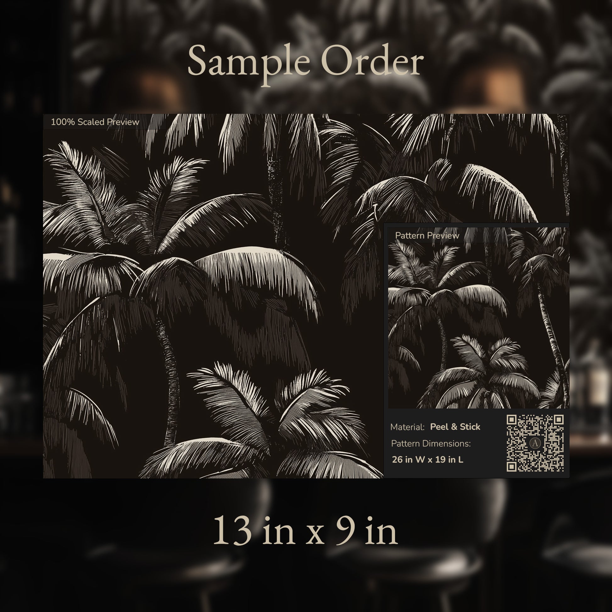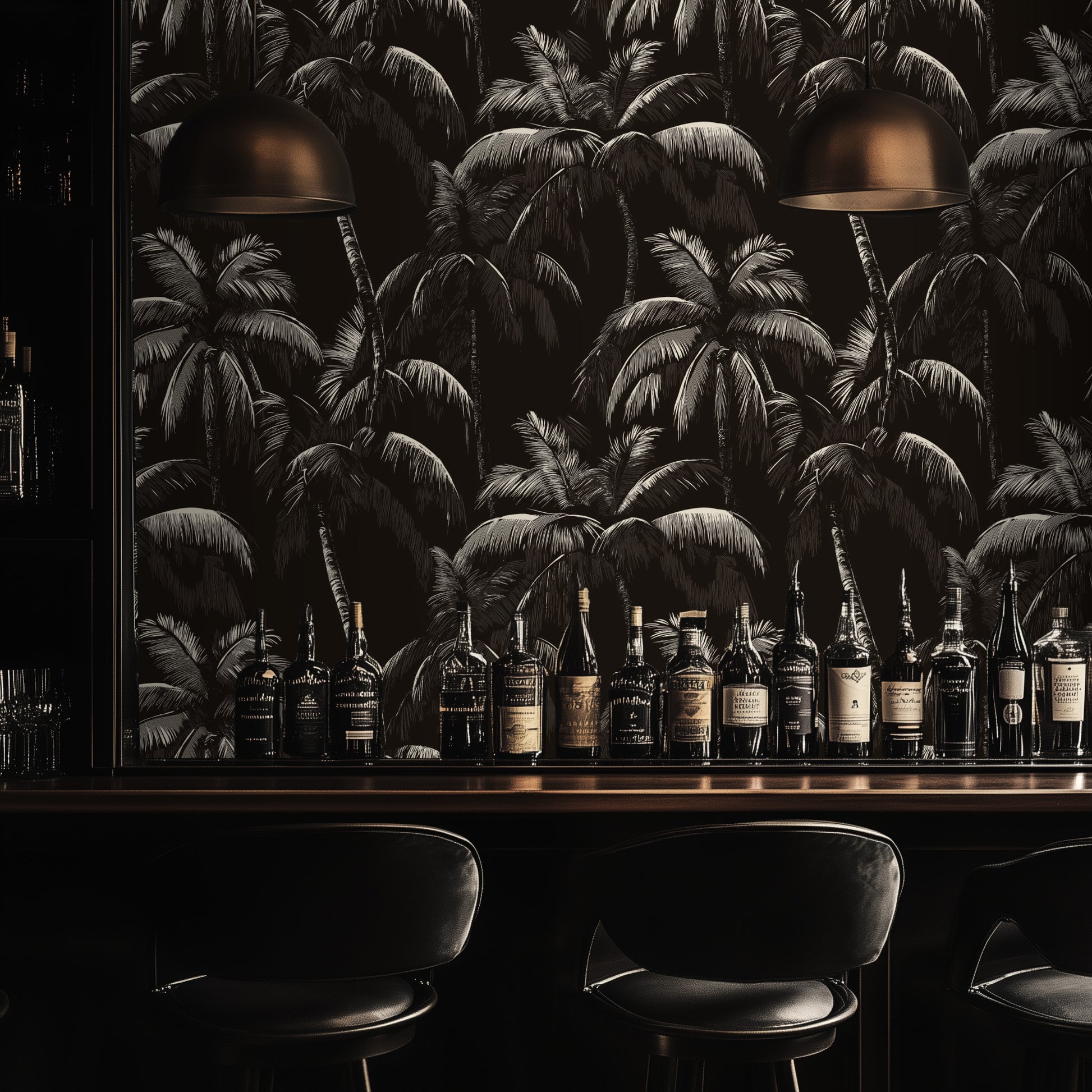 "Nocturnal Palms" captures the dramatic allure of tropical foliage under moonlit shadows. The intricate palm fronds, set against a rich black backdrop, create a bold yet serene design. This wallpaper exudes elegance and mystery, making it ideal for accent walls or full-room transformations. Perfect for interiors seeking a sophisticated, tropical edge, whether in dining rooms, lounges, or boutique spaces. Available in traditional and peel-and-stick formats for effortless application.